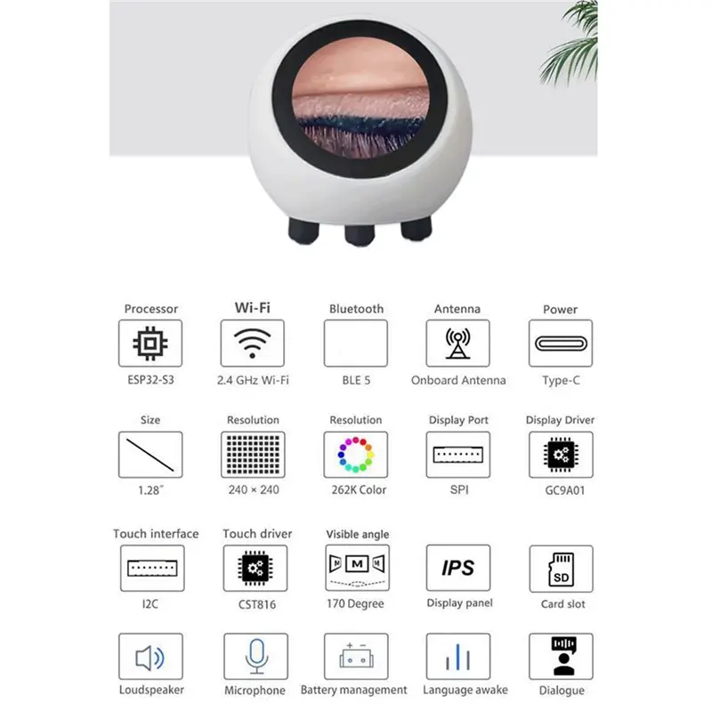B49C 2X Para Deepseek Xiaozhi Robô de Chat de Voz com IA ESP32-S3 Tela LCD Sensível ao Toque de 1,28 Polegadas Placa de Desenvolvimento Relógio Ornamento de Mesa