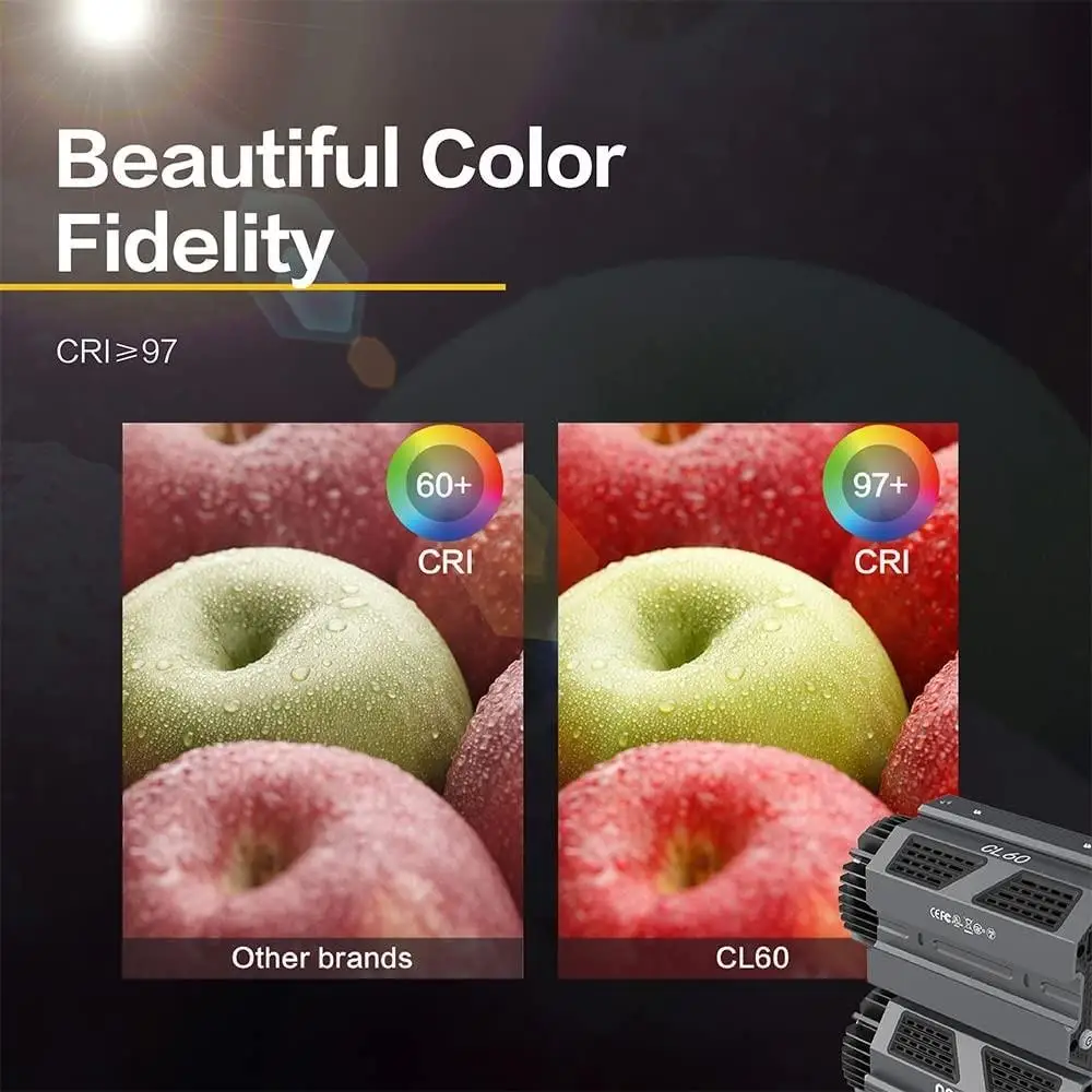 2.O acessório ultracompacto CL60 tem temperatura de cor variável de 2700K a 6500K com uma impressionante classificação CRI de 97+, enquanto o CL60M é uma luz de vídeo com equilíbrio de luz diurna de 5600K com saída de iluminação constante, contando com o design PowerCube e o controle Matrix.