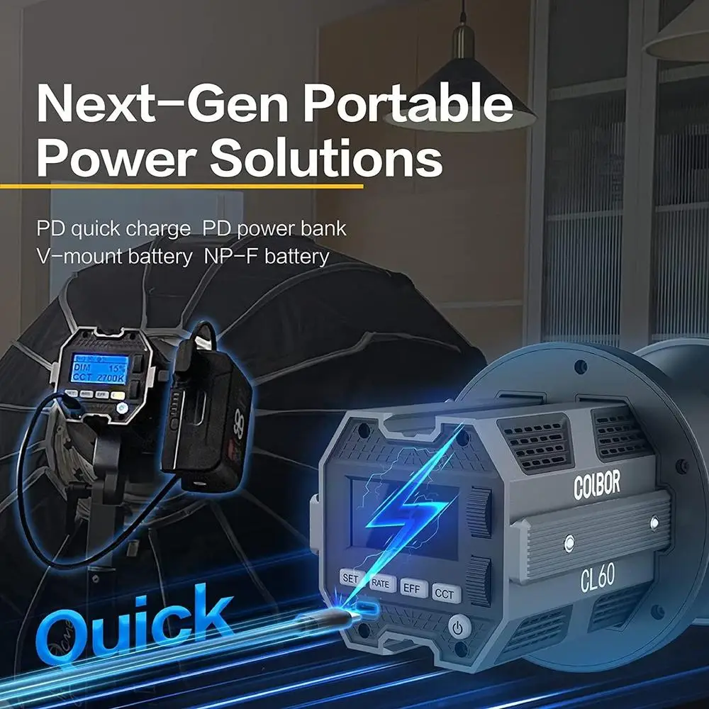 Com a primeira luz COB de 65 W no mercado que suporta banco de potência PD, agora você pode ter mais opções de energia para manter as luzes acesas em diferentes cenários como microfilme, transmissão ao vivo, entrevista, etc.
